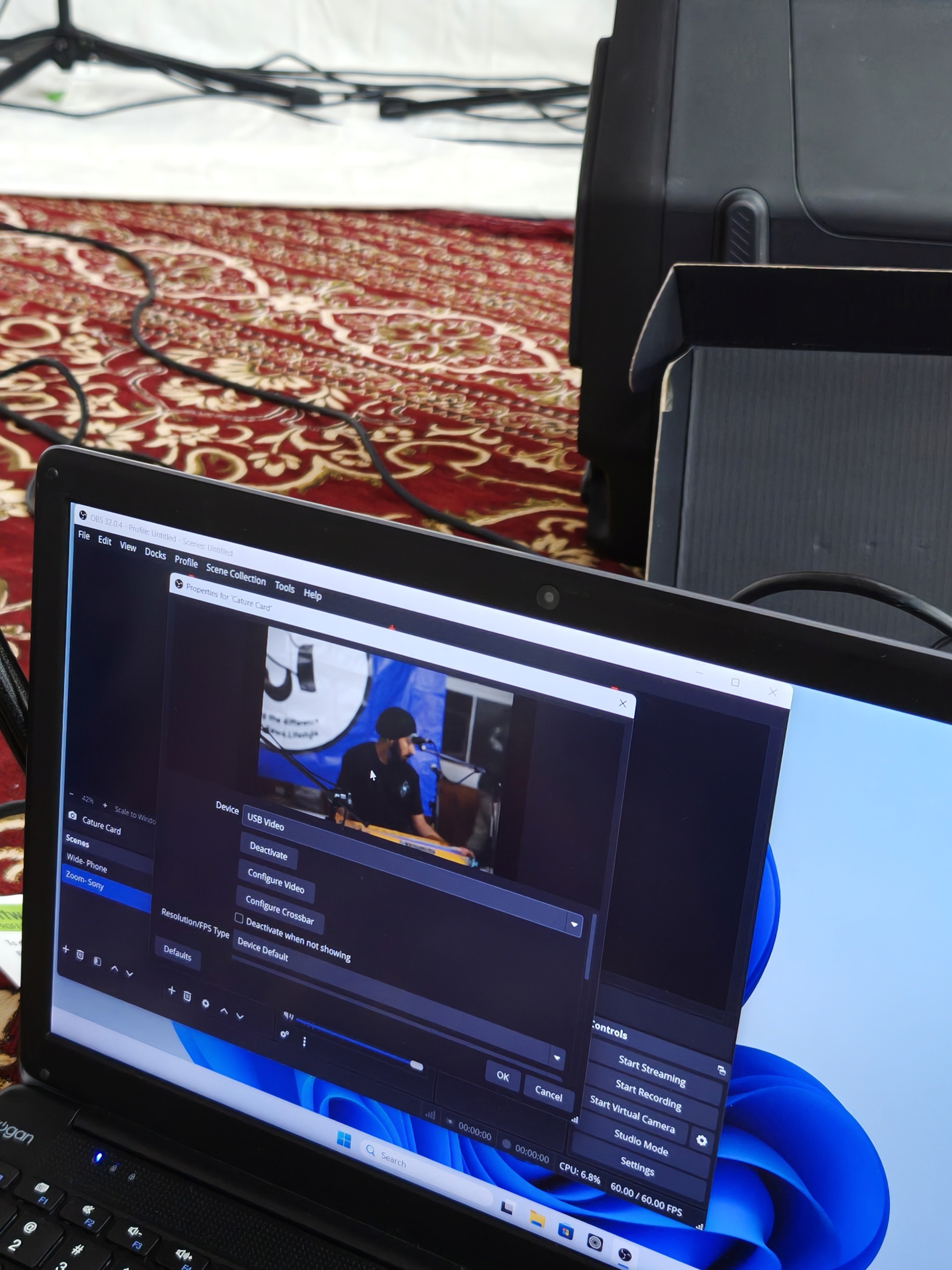 Using the mixers already available, I used OBS Studio to manage incoming audio, downmix it into stereo, and combine it with a phone for wide angle and a camera for zoom shots. Videos were backed up in real time to a custom home server I built running ZimaOS, which was later upgraded to Proxmox for ease of backups and reliability.
